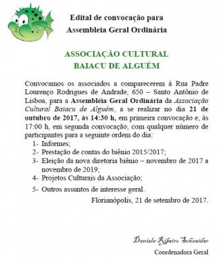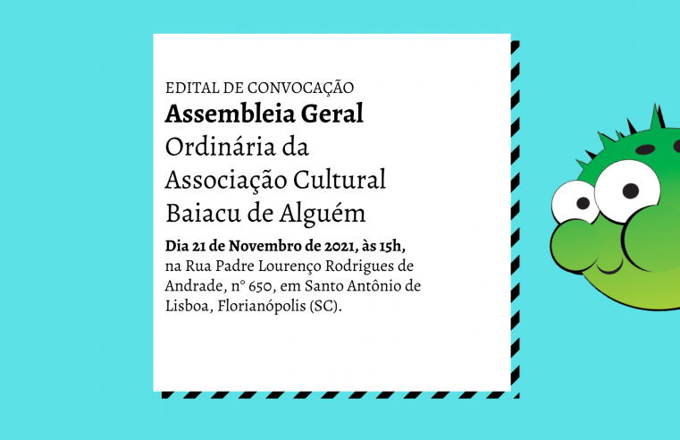 Edital de convocação para assembleia Geral Ordinária da Associação Cultural Baiacu de Alguém