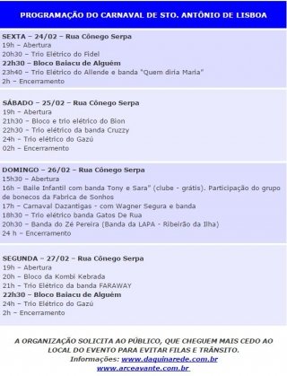 Leia MaisSEXTA – 24/02 – Rua Cônego Serpa 19h – Abertura 20h30 – Trio Elétrico do Fidel 22h30 – Bloco Baiacu